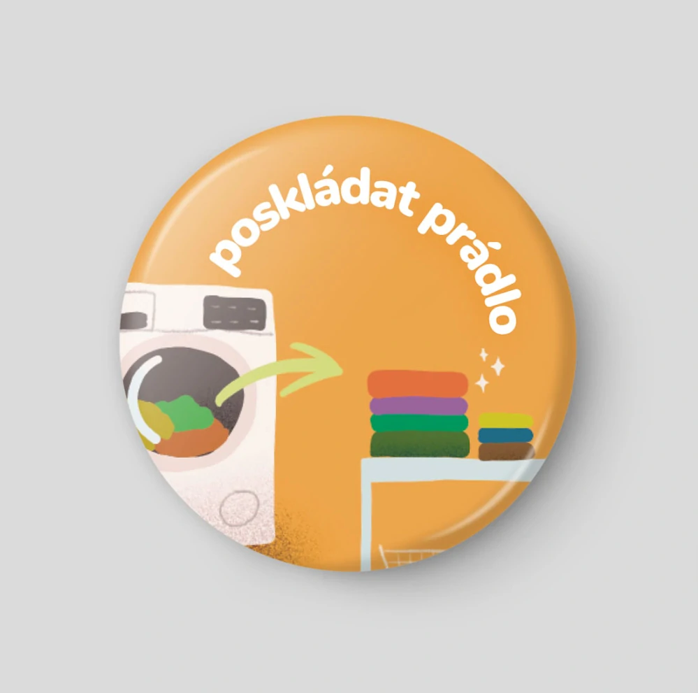 Magnetka Poskládat prádlo slouží jako jednoduché vizuální připomenutí běžného domácího úkolu, který se snadno odsunuje na později. Může jít o prádlo: